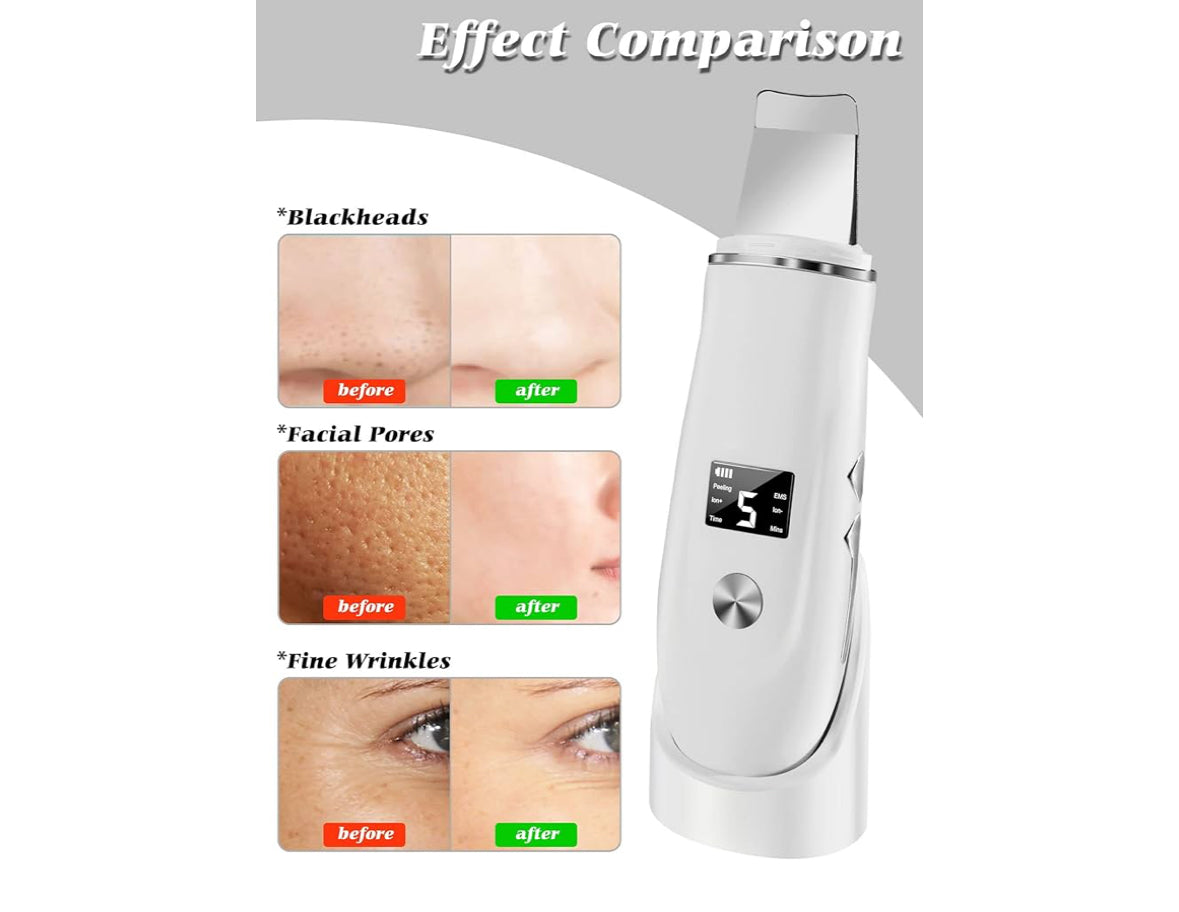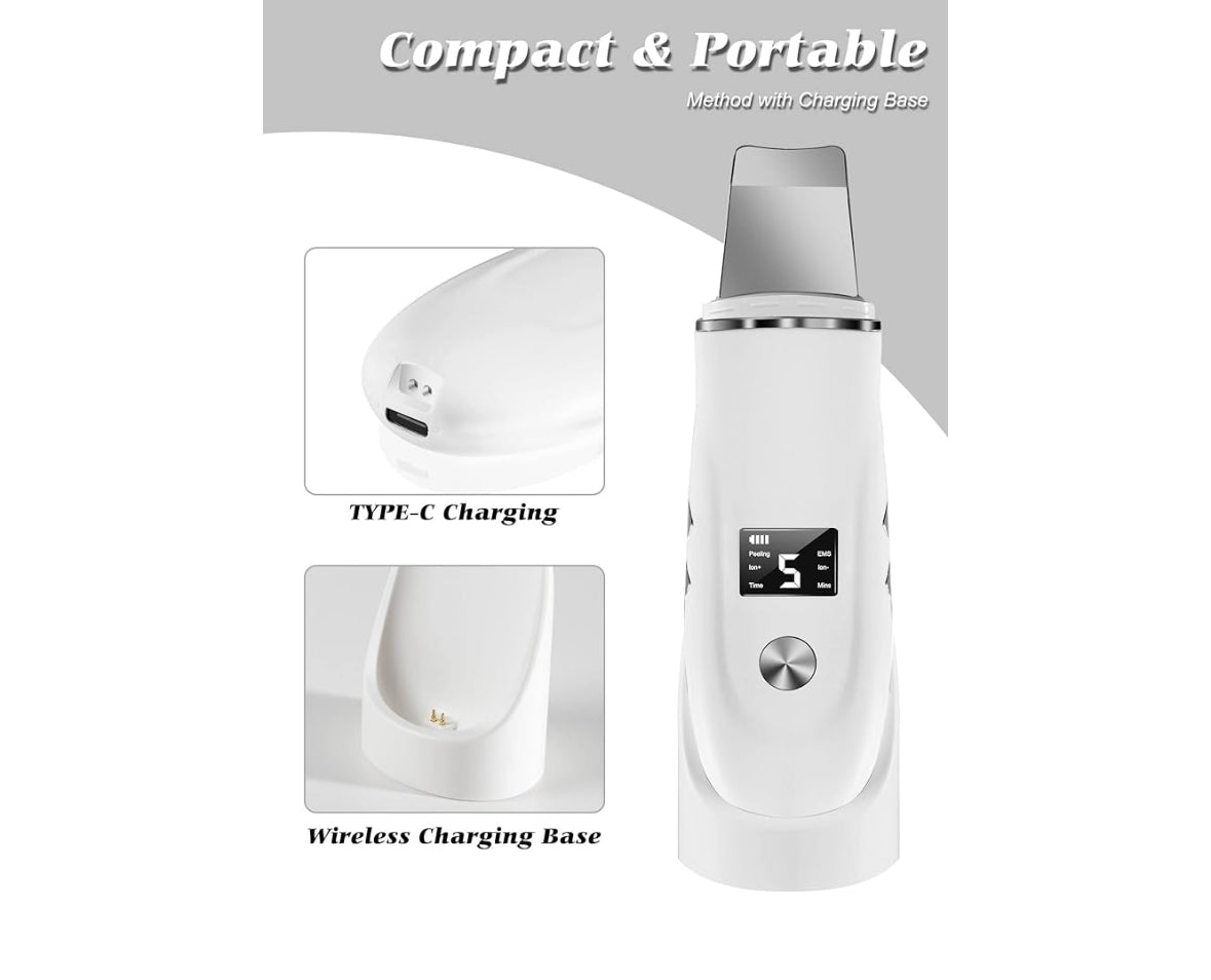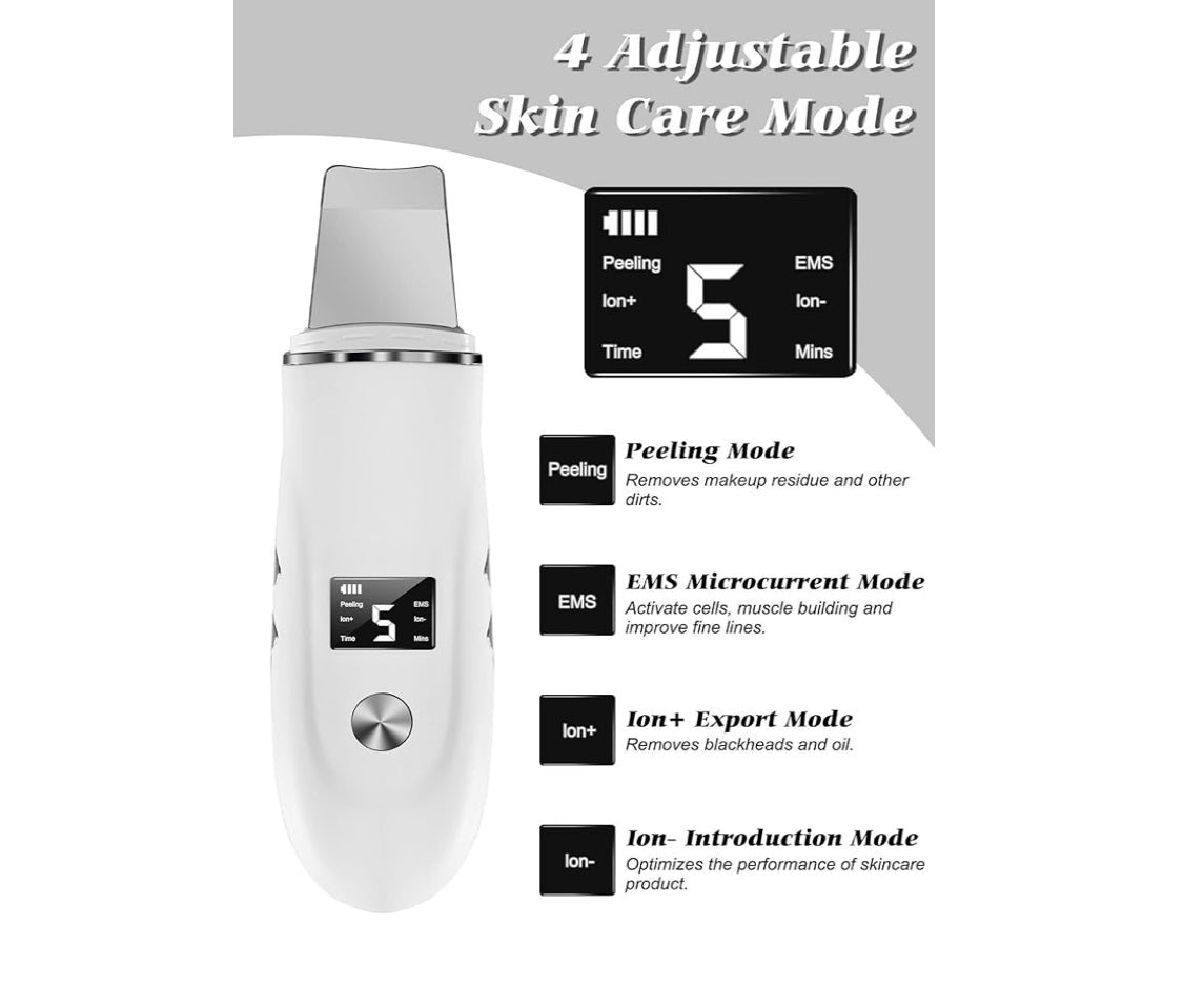 Beauenty Ultrasonic Skin Scrubber Face Spatula, Skin Spatula Pore Cleaner, Skin Dirt Blackhead Remover Tools for Facial Deep Cleansing - 4 Modes (White)